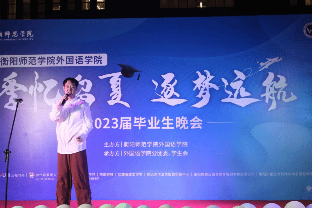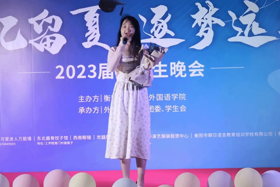 在活力四射的开场舞之后,主持人宣布毕业晚会正式开始。贺琴琴书记激情澎湃的英文开场感染了现场的每一位观众,她寄语所有毕业生四句话:要做一个胸怀天下,有远大抱负的人;要做一个正直善良的人;要做一个勤奋努力的人;要做一个不空想敢行动的人。贺书记的殷殷嘱托温暖和鼓舞了每一位学子。“May you have health, happiness and outstanding success in all your future life.”是贺书记对2023届毕业生们最真挚的祝福。
