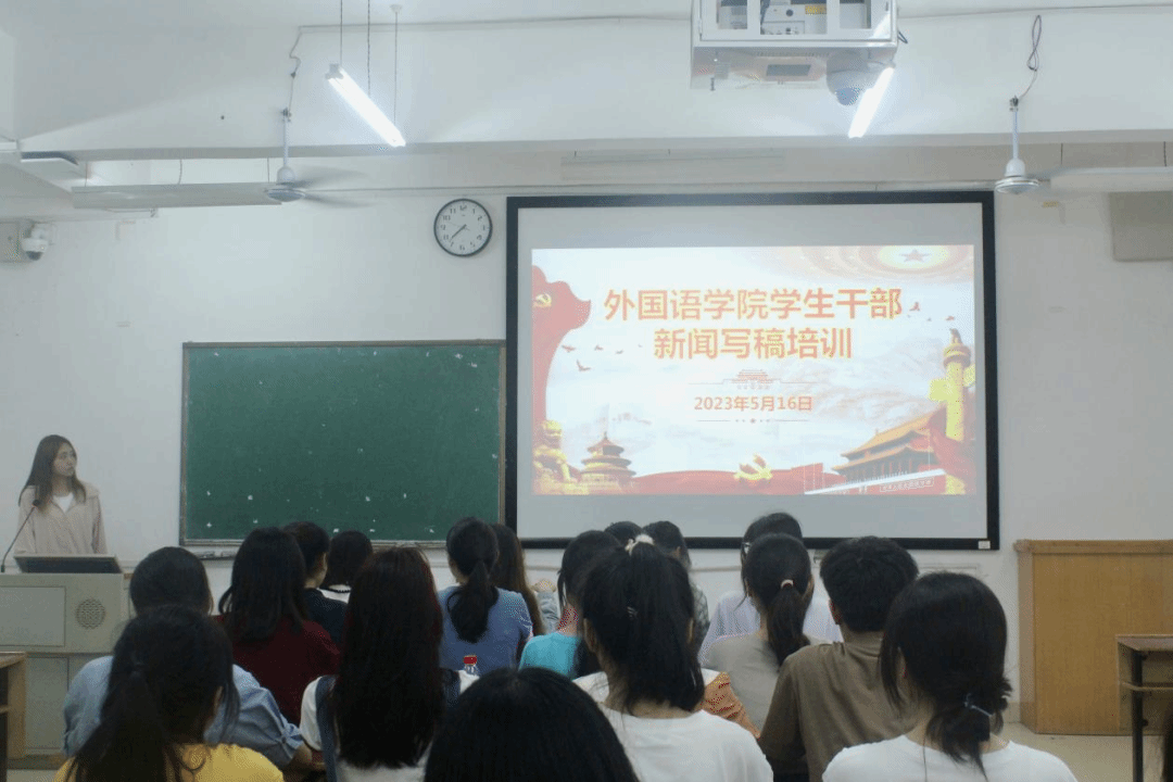为了进一步提升我们学生干部新闻报道的写作能力和技巧,提高我们宣传工作质量和水平,5月16日晚上,我们于外语楼北309教室开展学生干部新闻写作培训。本次培训由新闻传播学院陈泓霖主讲,我们辅导员陈琴主持,20余名学生干部参加。