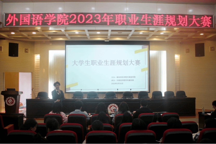 2023年3月31日下午,我们于外北311报告厅举办了2023年职业生涯规划大赛决赛。辅导员龚晨阳、刘志伟、陈琴,学风建设部部长阳洋、副部长莫林慧担任评委,2021级和2022级共120多名同学到场观摩学习,2021级戴桑榆主持活动。