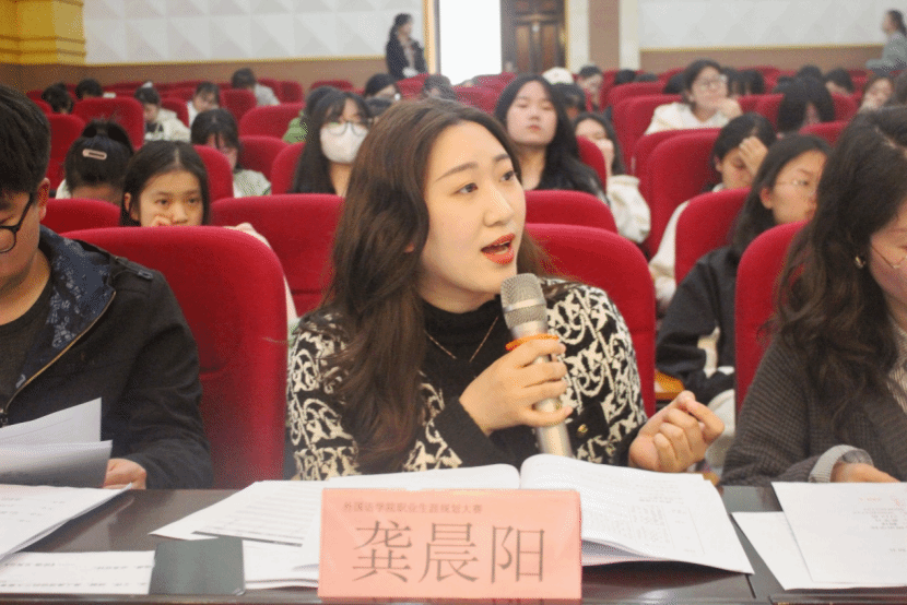 此次大赛共分为初赛、复赛、决赛三个环节,经过激烈角逐,共有10名选手进入决赛。决赛现场,参赛选手根据自身特点,结合实际经验,通过知识问答、PPT展示和现场答辩三个环节,从自我认知、职业认知、职业决策、计划和路径、评估与调整等多个方面全面展示自己对职业生涯的认知及对未来的规划。每一位选手都对自己的未来有着清晰的规划:有的同学立志成为一名优秀的人民教师,前往乡村及西部偏远地区,给那里的孩子带来知识和思想的启蒙;有的同学渴望成为一名出色的翻译官,在外交场合展现出青年人的独有魅力,成为中华民族伟大复兴进程中沟通中国与世界的桥梁;有的同学梦想成为一名公务员,服务人民,报效国家……