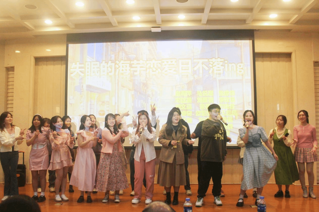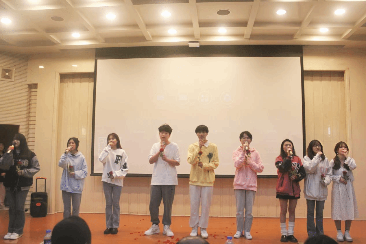 一首歌曲串烧将晚会的气氛推向高潮,从观众热情的掌声和尖叫中也听出了同学们对班导和学生会干部们深深的感情!