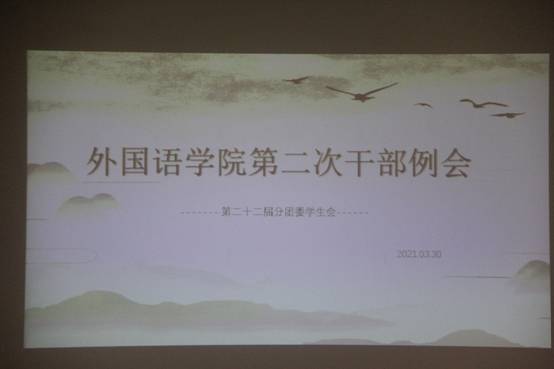 3月30日,我们于外北110召开本学期第二次学生干部例会。第二十二届分团委学生会全体成员、18-20级班长、团支书、学习委员以及年纪委员会主任、副主任参加会议。