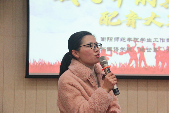 在所有比赛选手展示完之后,必威betway平台辅导员老师张倩对本次大赛进行了总结。首先,她分享了自己观看本次大赛的感受:通过选手们呈现的配音作品,她体会到了每一个角色深刻的形象特征,理解了每一个角色的内心世界。其次,她对所有参赛选手的表现表示了高度肯定,对所有为了本次比赛顺利举行默默付出的工作人员表示感谢。最后,她鼓励同学们多参加类似于配音比赛的大型比赛活动。