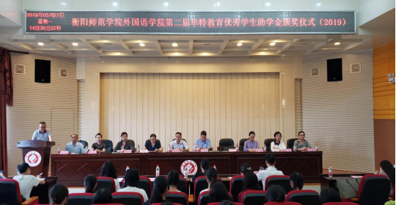5月27日下午,外国语 学院于外北311举行了第二届华特教育优秀助学金颁奖仪式,出席此次会议的有betway唯一官网学生工作部部长蒋杰、副部长何芳,东莞华特教育集团校长王浩平、运营总监谢丹、教学总监王丽雅,必威betway平台党总支书记郭友文、院长贺学耘、党总支副书记贺琴琴、副院长贺鸿莉、刘剑,教师代表、辅导员老师,获奖学生以及2016-2018级班级学生代表。