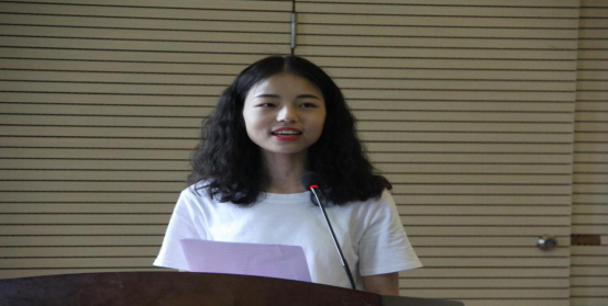 仪式进行第四项,由2016级翻译2班同学周聪代表获奖学生发言,首先她对华特教育如此殷切关怀优秀贫困学生的行为表达了最真挚的感谢。她回忆起自己大学三年的时光,“在这三年里,学院的领导,老师,同学们给予了我家一样的温暖,我也一直不忘初心努力学习,不断提高自己的专业水平,积极参加各项活动,阅览各类书籍,使自己的视野得以拓展,综合素质得到提高”。她表示,此次获奖之后,她将会带着大家对她的关怀更加坚定地前行,走向属于自己的远方。