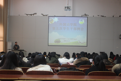最后,常务团副张紫薇就青马网络课程培训以及元旦晚会的相关事宜做了具体讲解,要求参加培训的学生干部积极参与,借助这次培训加强自己的认知能力,提高综合素质。对于元旦晚会,她强调,各学生会干部要以身作则,认清自己的职责所在,合理分工,同时也预祝此次元旦晚会取得圆满成功。