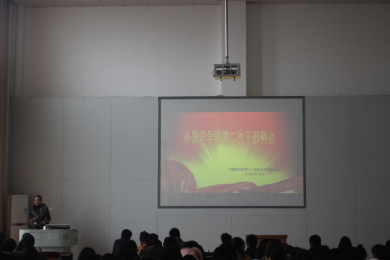 3月16日,必威betway平台于外语楼北110召开第二次学生干部例会。例会由党总支副书记何芳主持,年级辅导员老师以及第17届团总支学生分会干部、各年级班干部参加会议。