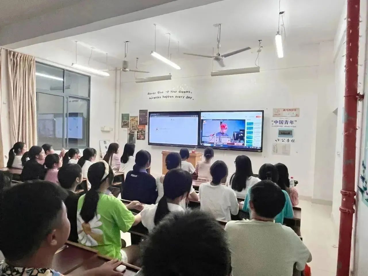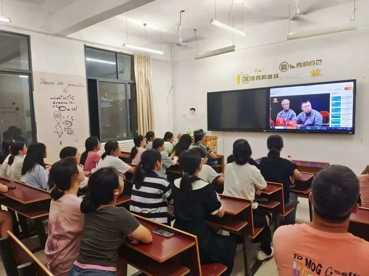 在课堂上,龙兵、郭晓芳、唐小芹三位老师激励大家,在不同的“职业蓝海”中远航、深潜,去探索和打拼出属于自己的“海阔天空”。万步炎老师,多次刷新世界纪录用他的创新精神,引导我们奋勇直前为中华民族复兴添砖加瓦。