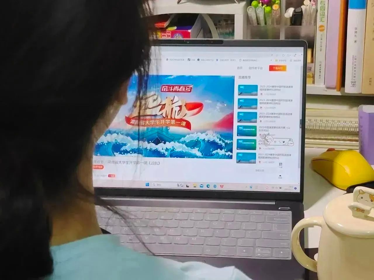 课上,全国模范教师、湖南大学马克思主义学院教授龙兵,全国教书育人楷模、“奋斗青春号”总制片人郭晓芳,湖南科技大学马克思主义学院教授唐小芹三位老师通过这堂贯穿古今的“开学第一课”,带领同学们了解中国人在海洋开发、利用上的悠久历史,感受顽强拼搏、艰苦奋斗、勇立潮头的精神风貌。