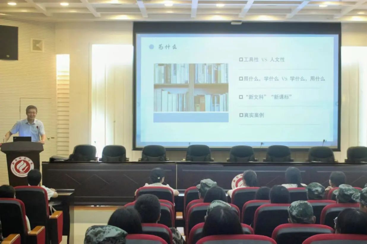 最后,刘晋寄语2023级全体新生:对于英专生而言,跳出职业内卷的方式之一在于学好人文知识。同学们不仅要积累更高的英语素养,还要在浩如烟海的学习中汲取、收获知识,最后成长为有知识、有头脑、腹有诗书气自华的新时代青年!