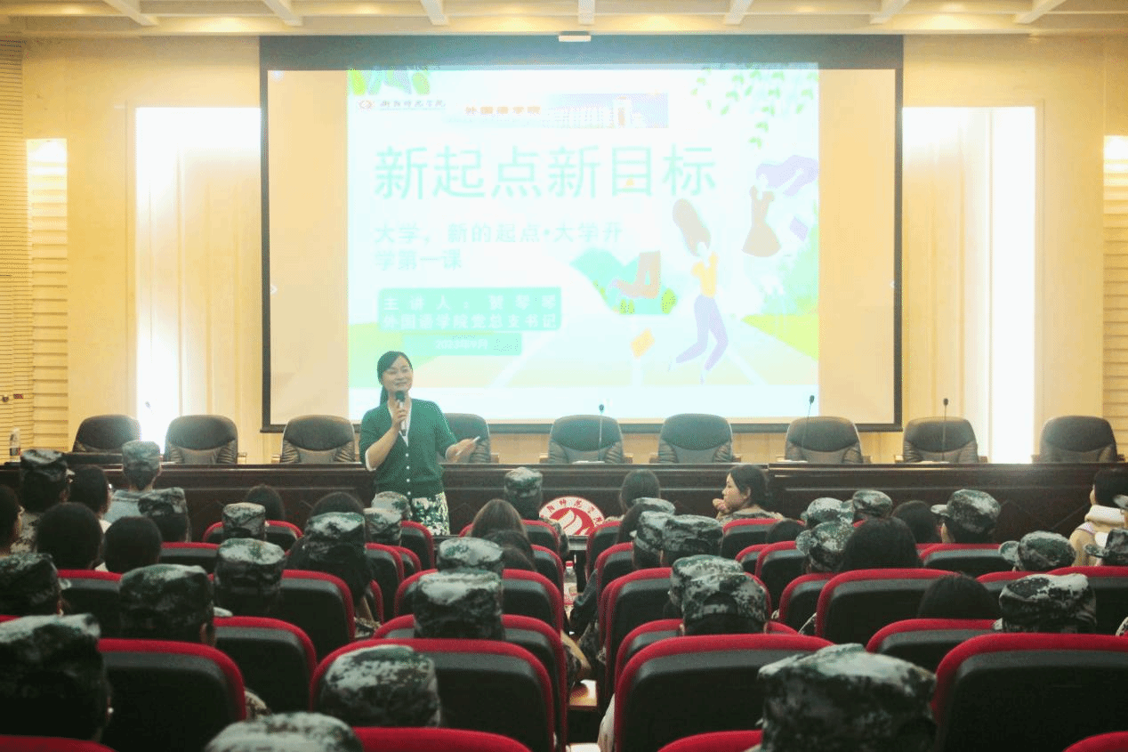 理想指引人生航向,信念承载青春理想,为教育引导2023级新生正确树立大学奋斗目标,厚植爱国荣校情怀,9月21日晚,我们党总支书记贺琴琴于外语楼北311报告厅开展理想信念教育,2023级全体新生到场聆听。
