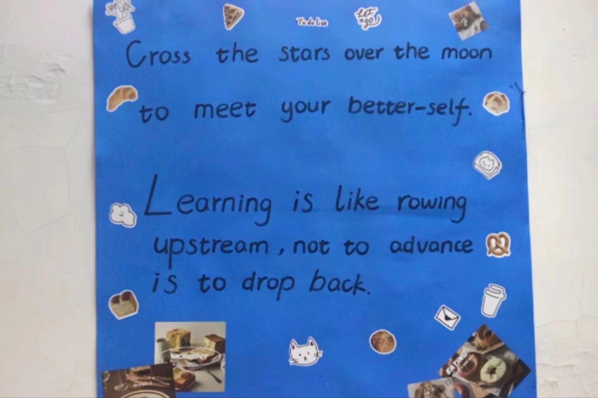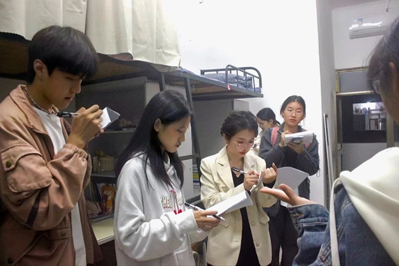 必威betway平台学子在寝室支起小黑板,利用碎片化时间学习,提供思考的场所的同时增进室友之间的情谊。