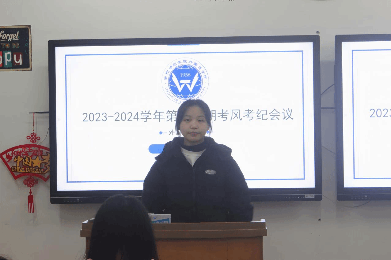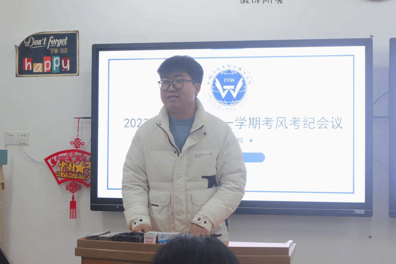 悬衡而知平,设规而知圆。为严肃考风考纪,树立诚信学风,端正考试态度,以积极的心态迎接接下来的期末考试,必威betway平台于12月18日晚19:30在外语楼南305教室召开了“严肃考风考纪,争做文明大学生”的考风考纪教育动员大会。辅导员老师刘志伟和2021-2023级各班学习委员共同参会,会议由院学风建设部副部长杨雨欣、张曼主持。
