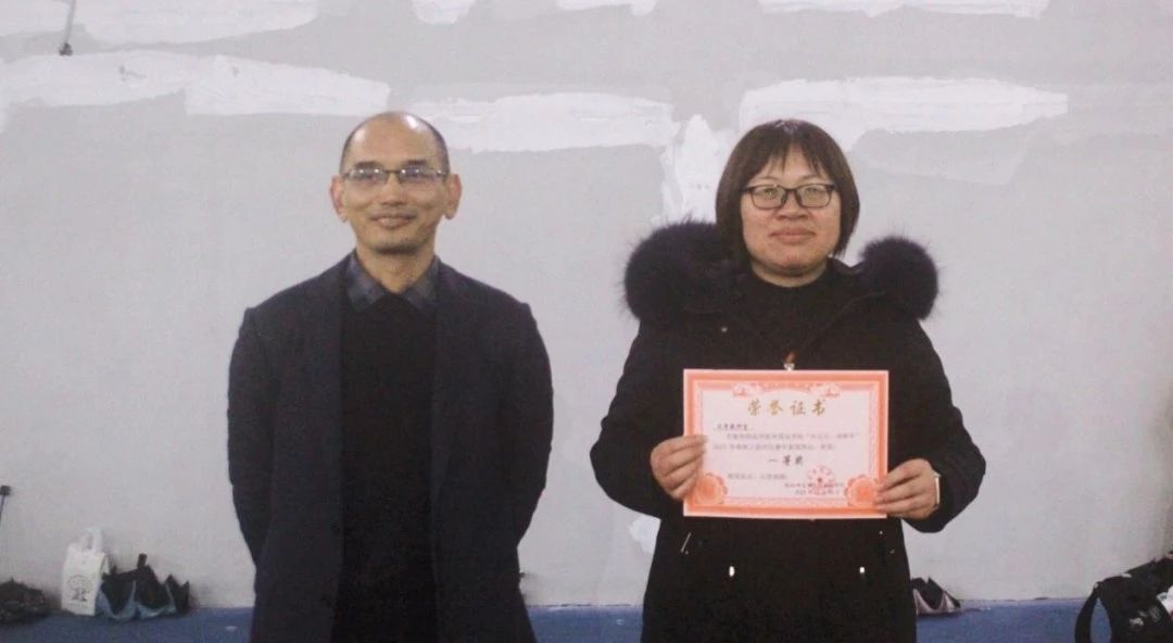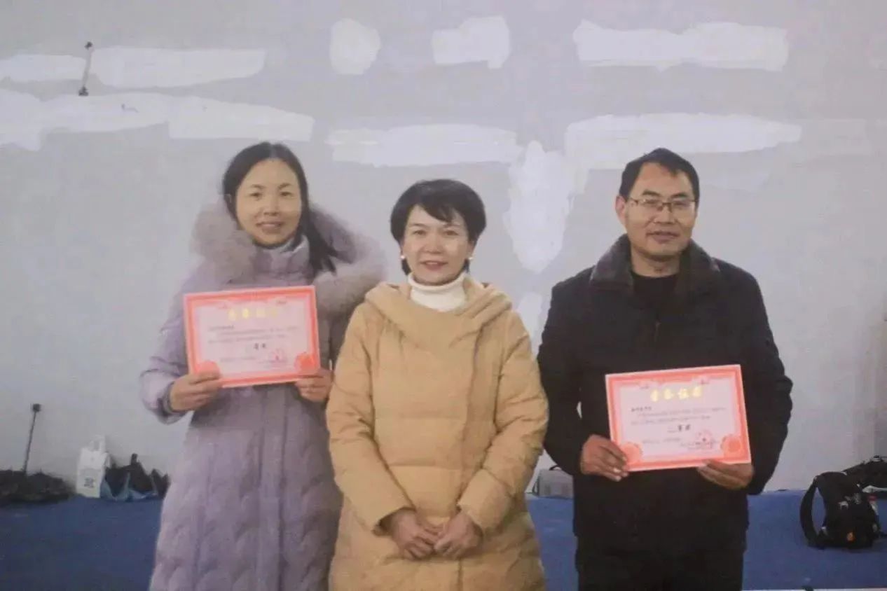 (党政办公室主任唐平和学工办主任邱国周为三等奖获奖队伍代表颁奖)