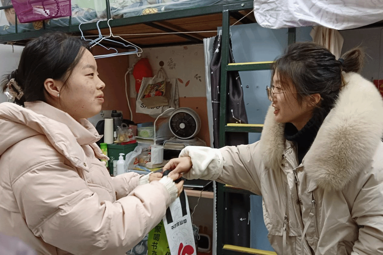 提着温暖的奶茶,来到考研学生寝室,邱国周和陈琴与考研同学分享自己考研时的趣事,缓解考研学子考前紧张心理,悉心嘱咐考前注意事项,晚上早点休息,心态轻盈上考场。