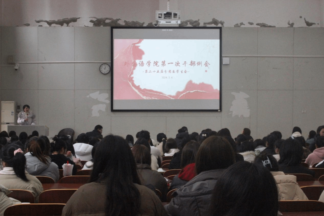 汇集新智慧,启航新篇章。为部署新学期学生工作,确保工作有序进行,3月4日,我们于外语楼北110教室召开本学期第一次学生干部例会。党总支副书记欧阳竹、学工办主任邱国周、辅导员老师龚晨阳、刘志伟、陈琴和刘方红出席本次会议,第25届团学干部、21-23级班长、团支书以及年级委员会主任、副主任参加会议。
