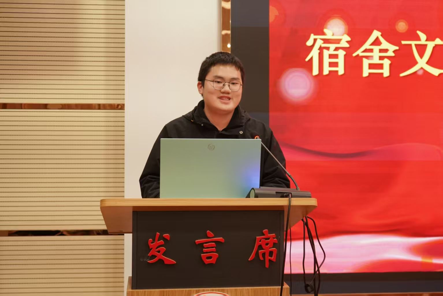 三位代表在发言中深情说道,每一份荣誉与成就的背后,都离不开三股重要的力量:一是同学们以初心为舵、以实干为桨,在追寻梦想的道路上始终坚守本心、笃行不怠;二是班级与宿舍同心同向、携手攻坚,心往一处想、劲往一处使,将集体的凝聚力汇成推动前进的磅礴动能;三是领导老师们始终如一的悉心指导和温暖陪伴,以专业学识为我们点亮前路,以深切关怀为成长保驾护航。同时,他们也代表全体同学郑重承诺:在未来的大学生活中,将以更加饱满的热情、更加坚定的步伐接续奋斗,以实际行动回应领导与老师的殷切期望,书写更为精彩的青春篇章。