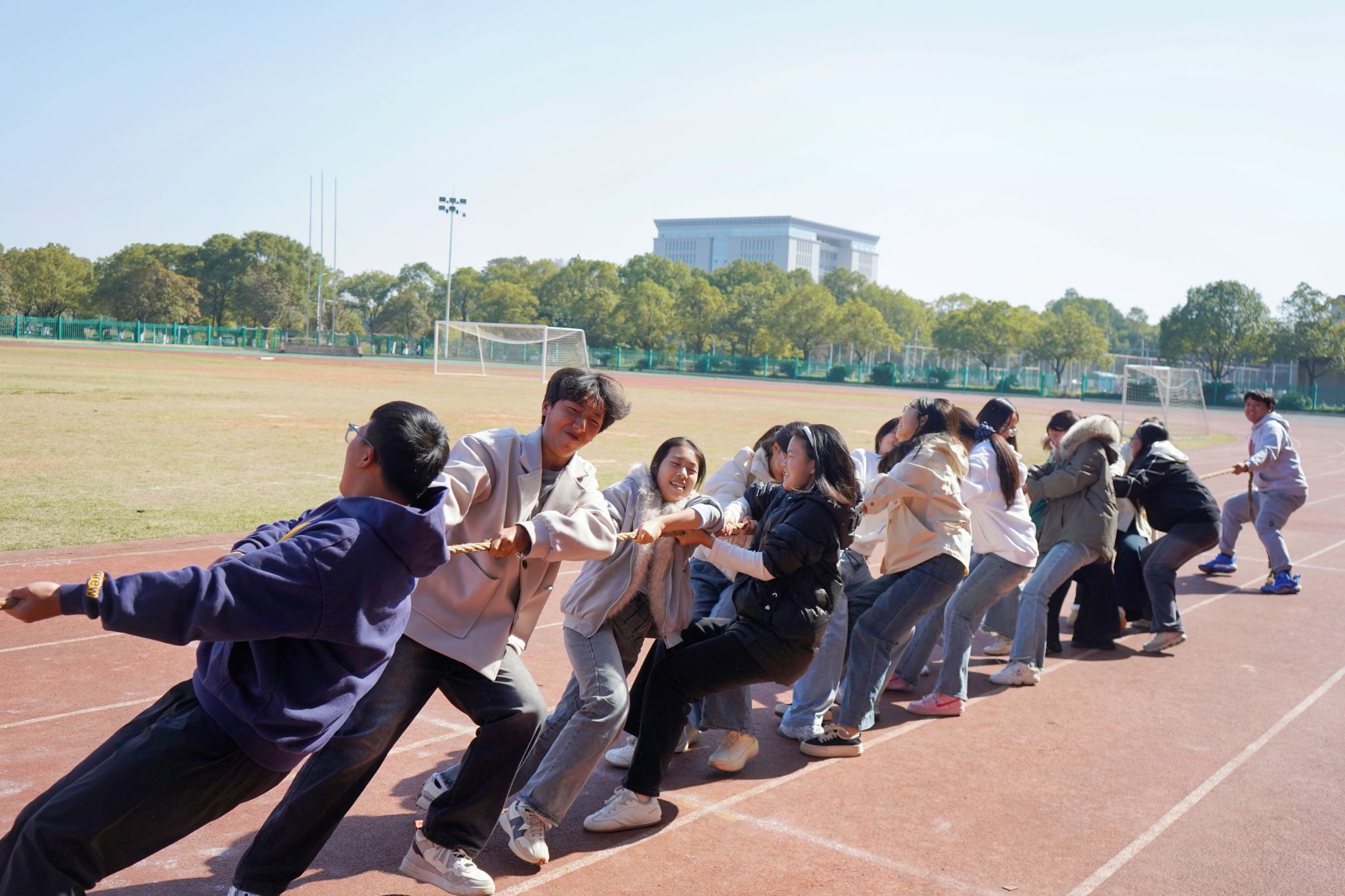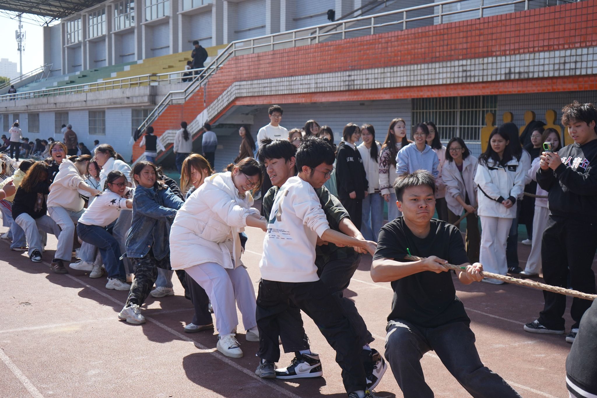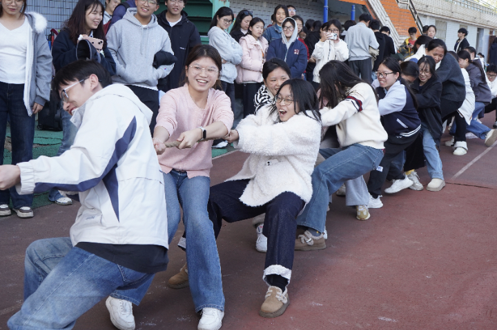 为丰富校园文化生活,进一步增强班级凝聚力与集体荣誉感,近日,我们依托“她世界”女生教育工作室成长交流平台,组织开展班级协作竞技活动。11月27日12:50,“凝心聚力,‘绳'采飞扬”第四届集体拔河比赛在风雨田径场拉开帷幕,学院学工办主任邱国周,辅导员陈琴、曾超、刘方红,以及研究生队伍和全体2024和2025级同学们集聚赛场,在拔河赛道上协作发力,竞技成长,共同书写青春风采。