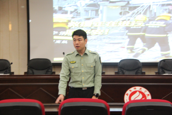 首先,张教官通过模拟火灾发生前场景的提问,说明拥有消防安全知识的重要性和开展消防安全知识讲座的必要性。张教官按照“防消结合,预防为主”的原则,针对不同火灾场景如何正确开展安全疏散与逃生的知识等内容向大家进行深入浅出的讲解。