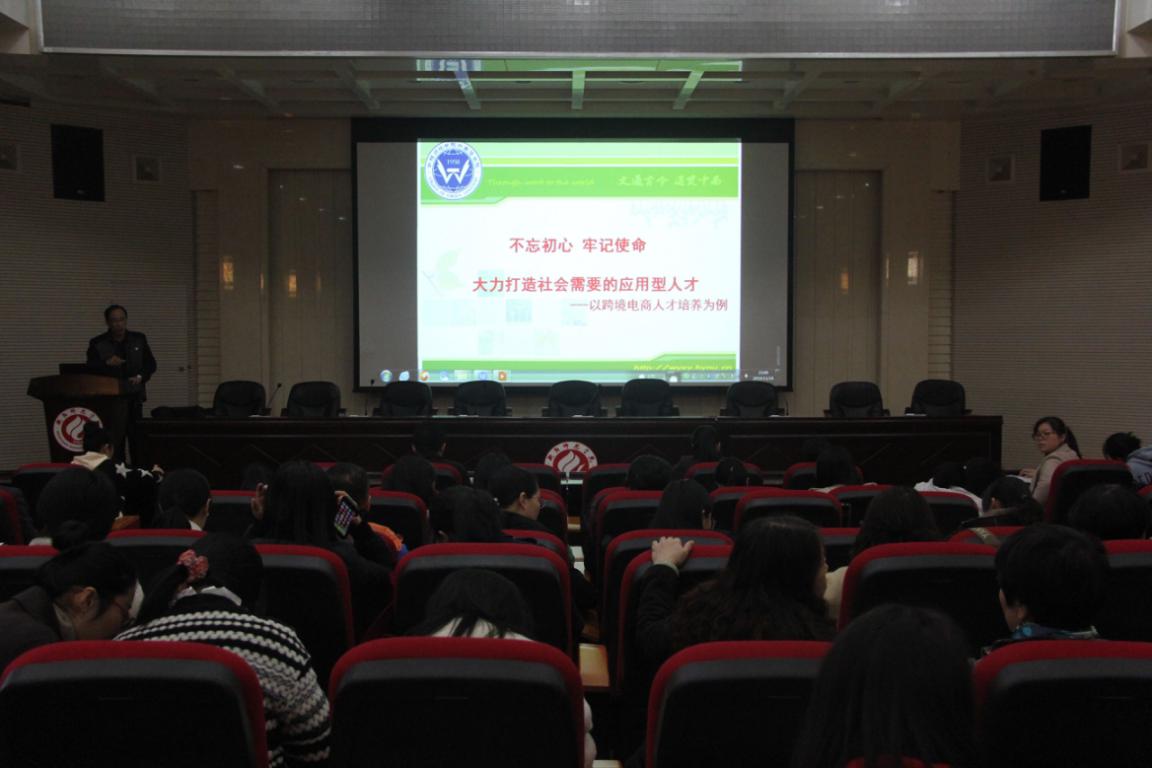 首先,贺院长以跨境电商人才培养为例,对我校与深圳市通拓科技有限公司的合作项目进行了简要介绍,并进一步介绍了双方合作培养双师型教师的现状。随后,贺院长从课堂教学改革、第二课堂教学改革、实践教学改革、创新创业教育等方面对必威betway平台应用型人才培养方面的举措进行了详细的阐述。