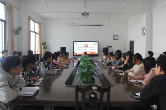 11月3日中午,我们于外语楼南213会议室顺利召开了共青团湖南省委2019年“送培训下基层”主题团课,此次团课由我们分团委书记封伟为老师主讲,参与人员有18-19级各班班长、团支书以及分团委学生会主席团成员、部长、副部长。