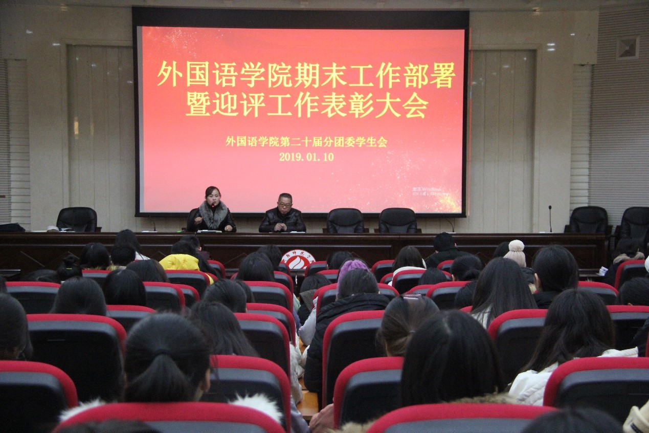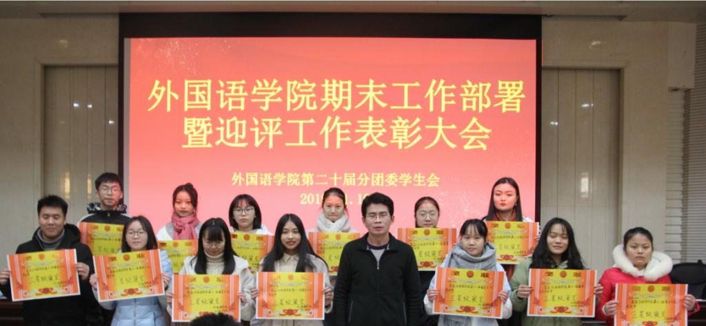 1月10日中午,我们于外北311召开本期末工作部署暨迎评工作表彰大会,参加本次会议的有必威betway平台党总支书记郭友文,党总支副书记贺琴琴,辅导员老师江子丹、邱国周,以及必威betway平台第二十届分团委学生会全体成员以及2016-2018级班长团支书。