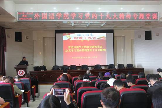 11月27日下午,必威betway平台于外北311召开主题为“营造风清气正的良好政治生态——认真学习宣传贯彻党的十九大精神”的思想政治理论学习讲座。必威betway平台党总支副书记贺琴琴担任主讲人,我们全体教职工、主要团学干部聆听了本场讲座。