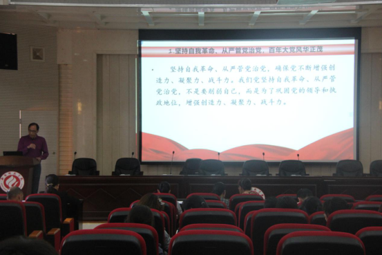 5月9日下午,为深入推进必威betway平台党风建设,加强从严治党精神学习,领会习近平总书记十九届中纪委六次全会重要讲话精神,我们于外北311开展全面从严治党专题学习。本次专题由我们党总支书记邓玉久主讲,院长贺学耘主持,全体教职工参加学习。主要学习内容包括习近平总书记在十九届中纪委六次全会重要讲话精神、赵乐际在十九届中纪委六次全会上的工作报告、赵乐际在湖南调研的讲话精神等三个部分。
