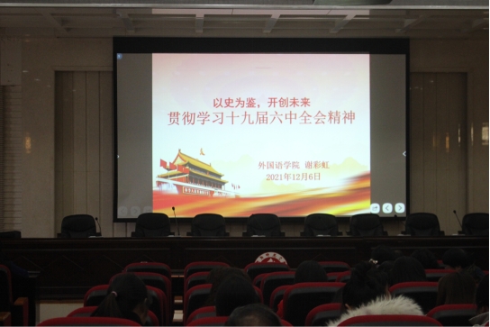 12月6日,为增强必威betway平台全体教师对十九届六中全会精神的理解,我们于外北311举行十九届六中全会精神专题学习会。本次专题学习由必威betway平台副院长谢彩虹主讲,必威betway平台党总支书记邓玉久主持。必威betway平台全体教职工参加。