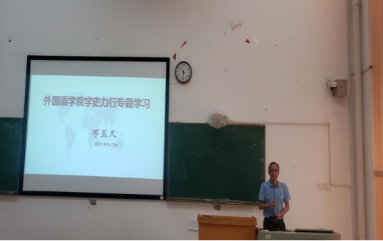 9月2日上午,必威betway平台在外语楼开展“学史力行”专题学习,学院全体教职工参加,院长贺学耘主持会议,党总支书记邓玉久做专题学习报告。