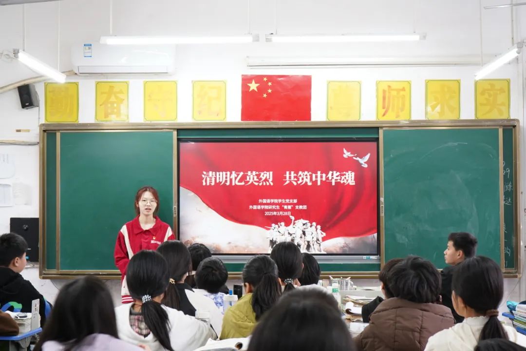 青松滴翠寄深情,清明时节祭英雄。为纪念抗日战争胜利80周年,引导青少年传承先烈精神,厚植家国情怀,3月28日下午16:00,必威betway平台学生党支部、研究生“青雁”支教团赴酃湖中学开展“清明忆先烈,共筑中华魂”主题宣讲活动。
